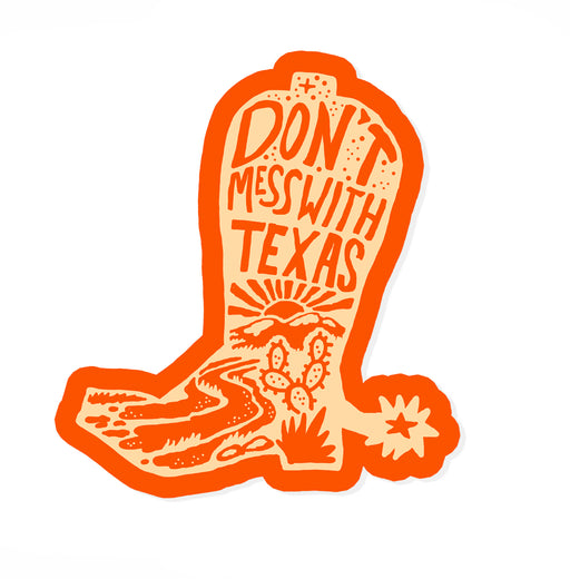Don't mess with Texas or you will get this boot. 3.1W X 3.5H  All Weather Die Cut Vinyl Sticker Great for putting on your car, water bottle, or coo...