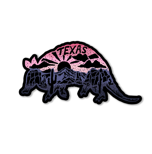 Armadillos love Texas 4.4W X 2.3H  All Weather Die Cut Vinyl Sticker Great for putting on your car, water bottle, or cooler!